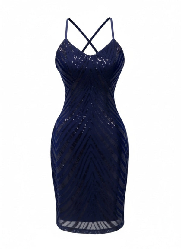 1920er Pailletten Zickzack Rückenfrei Party Kleid