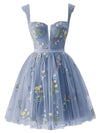[Vorverkauf] Hellblau 1970er Besticktes Blumen Spitze Mini Kleid