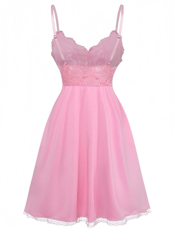 1940er Spaghetti Träger Spitze Bogen Nachthemd