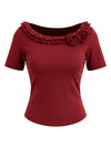 [Vorverkauf] Rot 1950er Doppelt Schicht Rüschen Rose Stricken Top