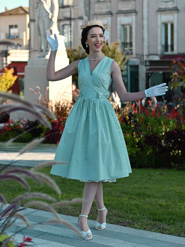 Mintgrün 1950er V-Ausschnitt Gestreiftes Kleid