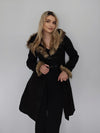 Vintage ist dein Lieblingsort, Liebling! Die langen, pelzbesetzten Ärmel enden mit Abnähern an der schmalen Taille, wo ein fließender Saum über das Knie hinausreicht und deine feminine Figur betont. Schlicht und doch raffiniert: Die figurbetonte Etui-Silhouette passt perfekt zu deinem eleganten Kleid – perfekt für Partys und den Beruf.