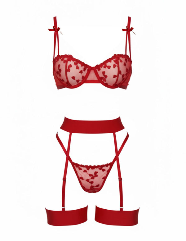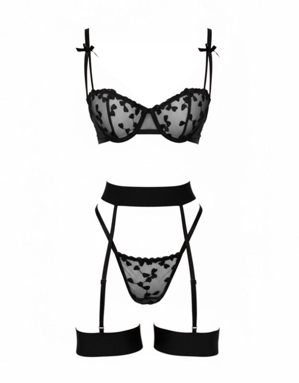 3PCS 1980er Spitze Bogen Detail Wäsche Set