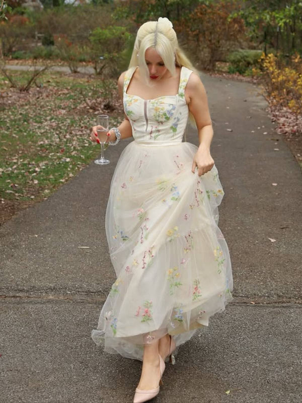 Gelb 1930er Blumen Netz Stäbchen Schnürung Kleid