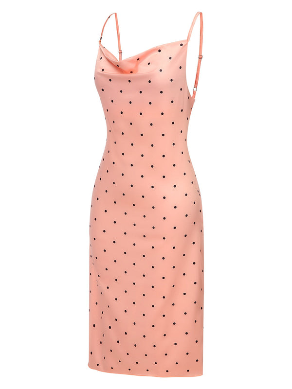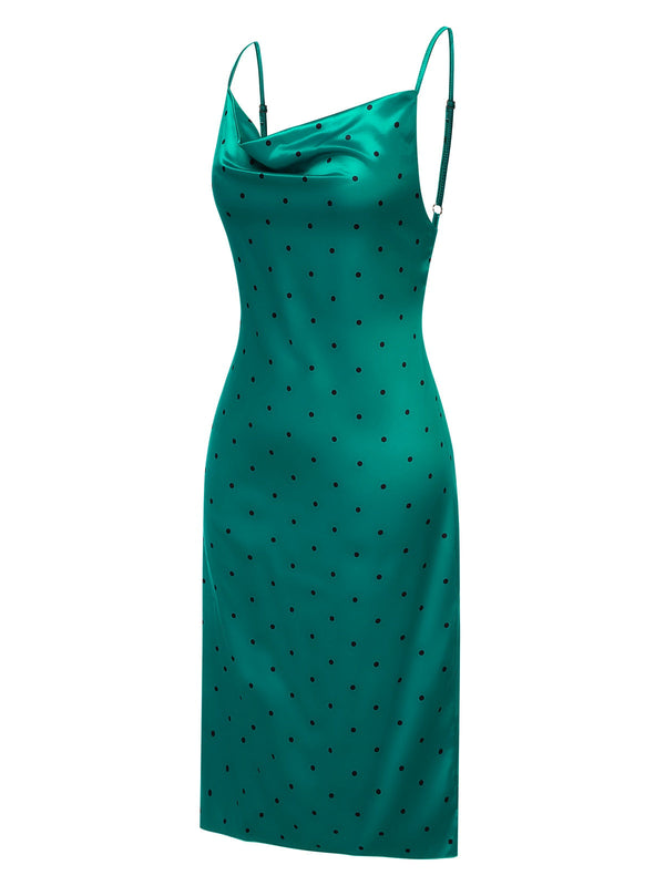 1930er Polka Dots Spaghetti Träger Satin Nachthemd