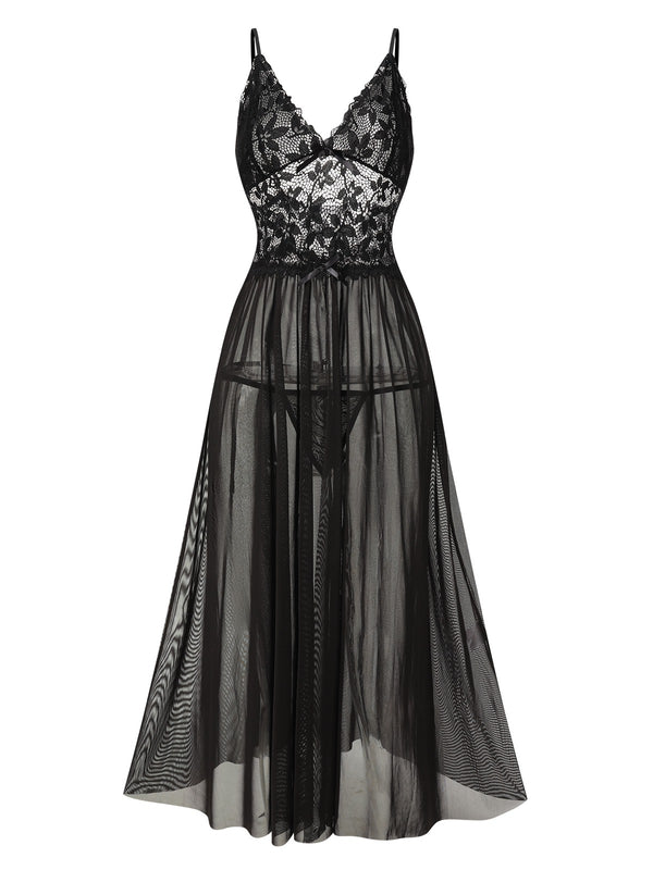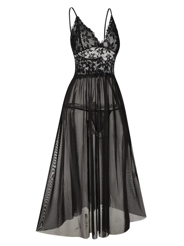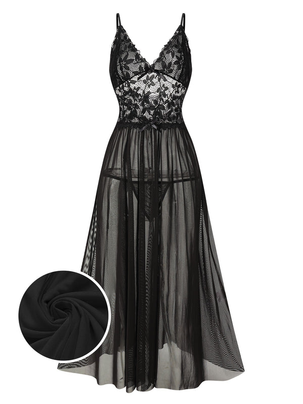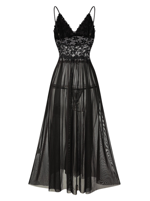 1930er Sheer Spitzen Spaghetti Träger Nachthemde