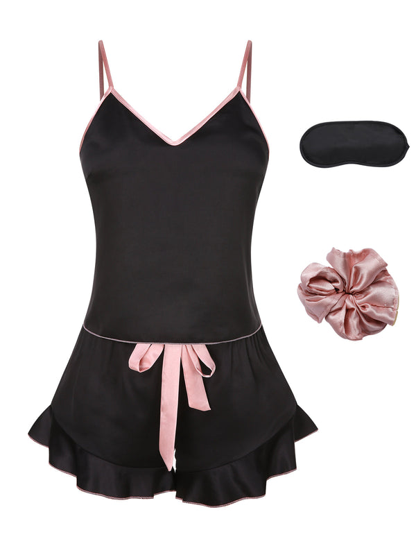 Lieferumfang: 1 x Damenoberteil, 1 x Damenshorts, 1 x Stirnband, 1 x Augenmaske
