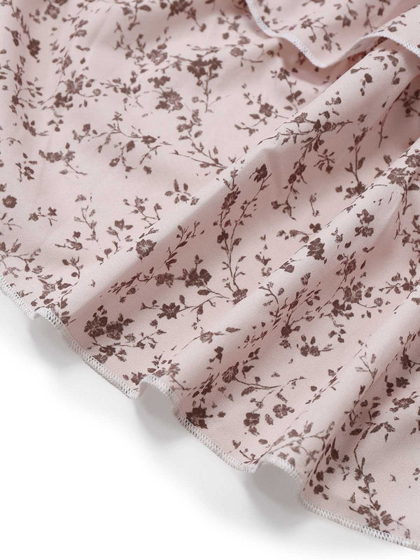 Mehrfarbig 1940er Blumen V-Ausschnitt Unregelmäßig Rüschen Saum Kleid