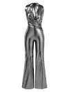 Silber 1970er V-Ausschnitt Halter Pailletten Jumpsuit