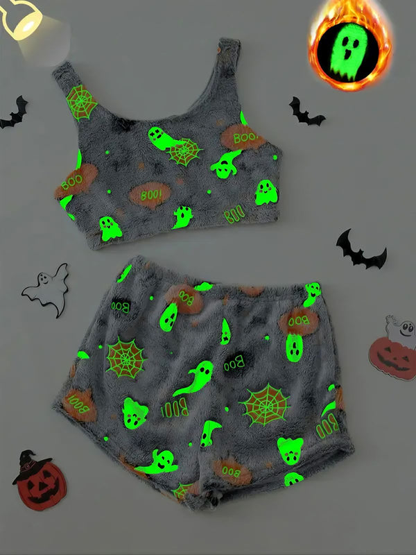 2PCS Grau 1970er Halloween Glühend Flanell Pyjama Sett