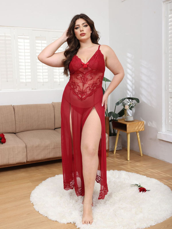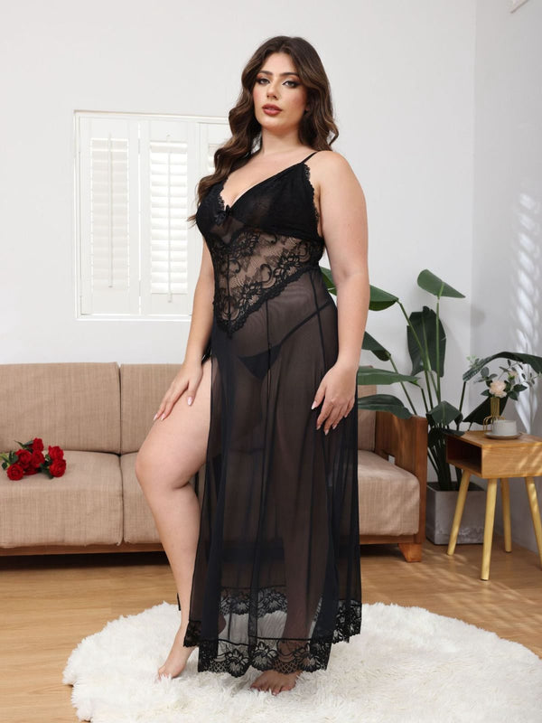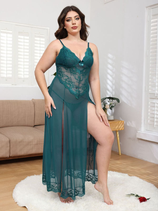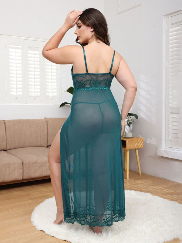 [Übergröße] 1930er Netz Spitze Spaghetti Träger Schlitz Nachthemd