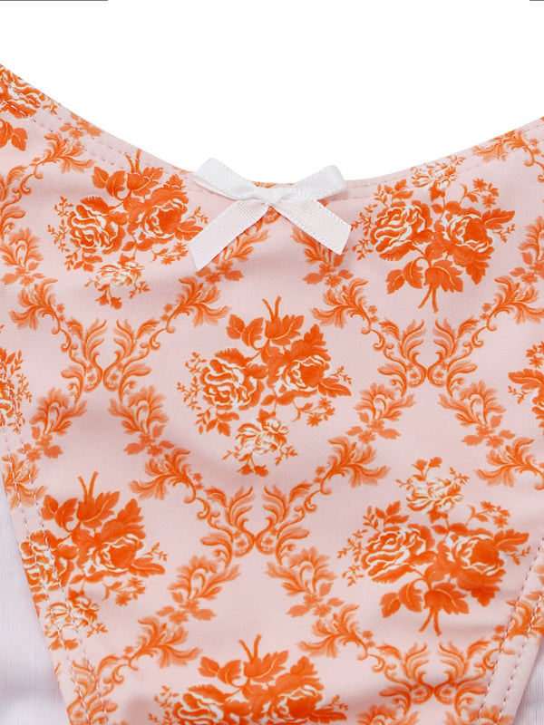 Orange 1970er Tief V-Ausschnitt Blumen Druck Tankini Set