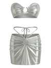 [Vorverkauf] Silber 1970er Bandeau Metallic Gerafft Bikini Set