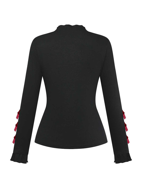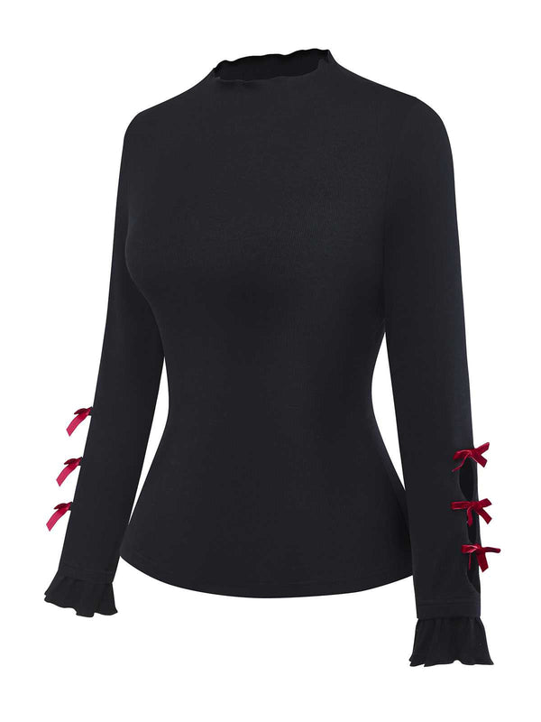 [Vorverkauf] Schwarz 1950er Rollkragen Bogen Stricken Top
