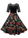 Schwarz 1950er Weihnachten Strumpf Spitze Patchwork Kleid