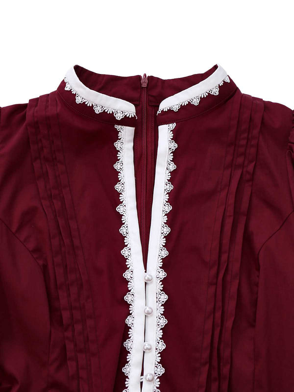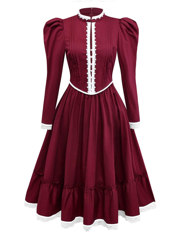 [Vorverkauf] Weinrot 1930er Viktorianisch Spitze Langarm Kleid