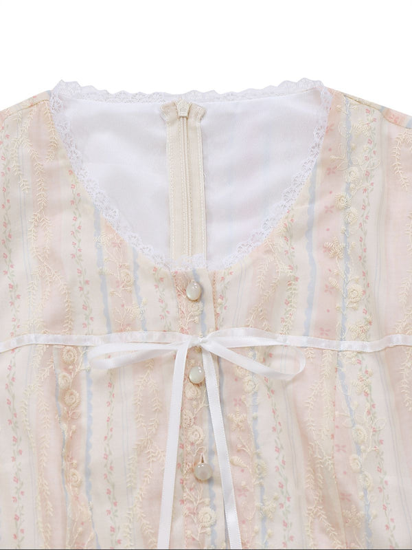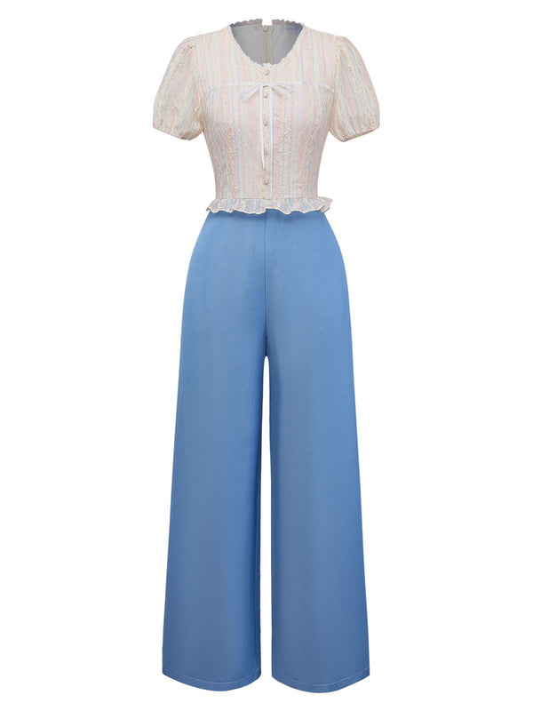 [Vorverkauf] Blau 1970er Blumen Besticktes Fliege Jumpsuit