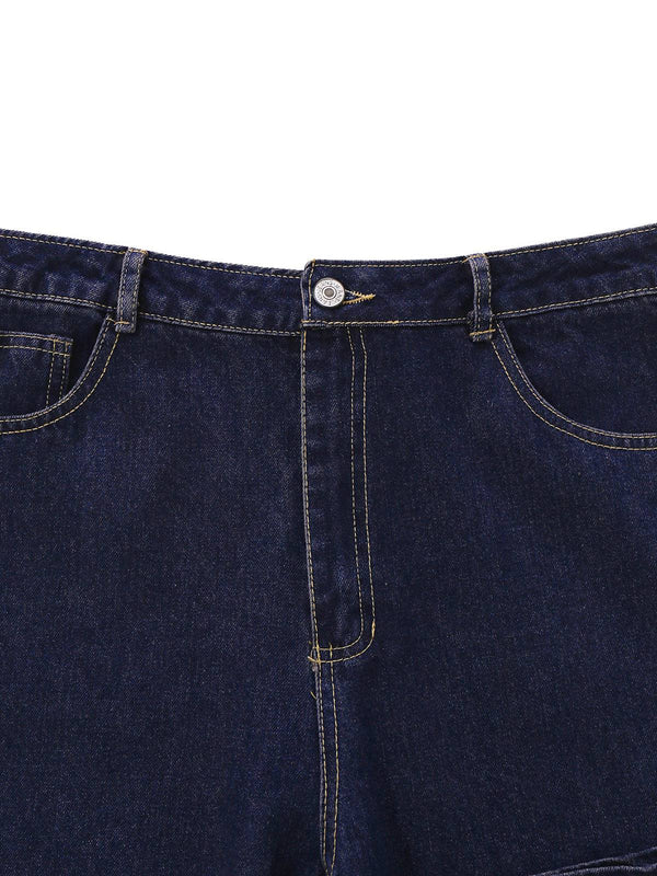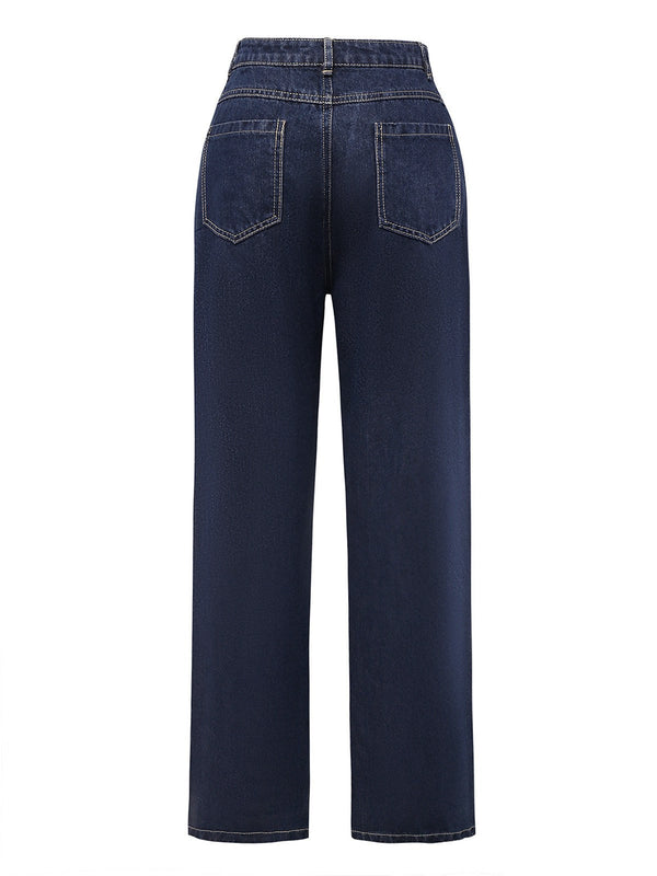 Tiefblau 1950er Jeansstoff Gerade Bein Hose