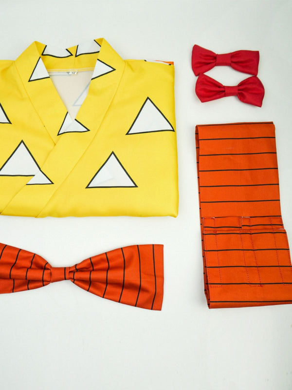 Gelb 1970er Agatsuma Zenitsu Kimono Cosplay Kleid