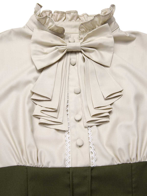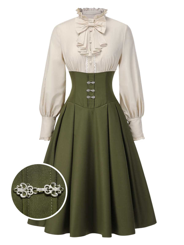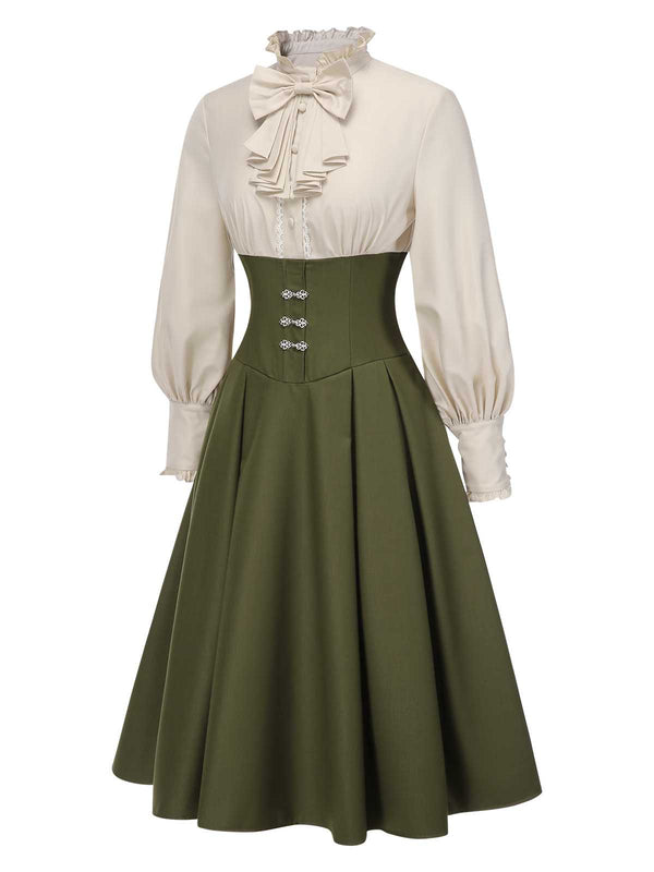 [Vorverkauf] 1950er Viktorianisch Bogen Tie Rüschen Langarm Kleid