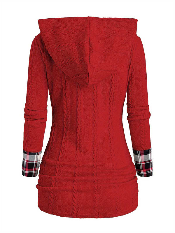 1940er Stricken Plaid Tasten Hooded Pullover