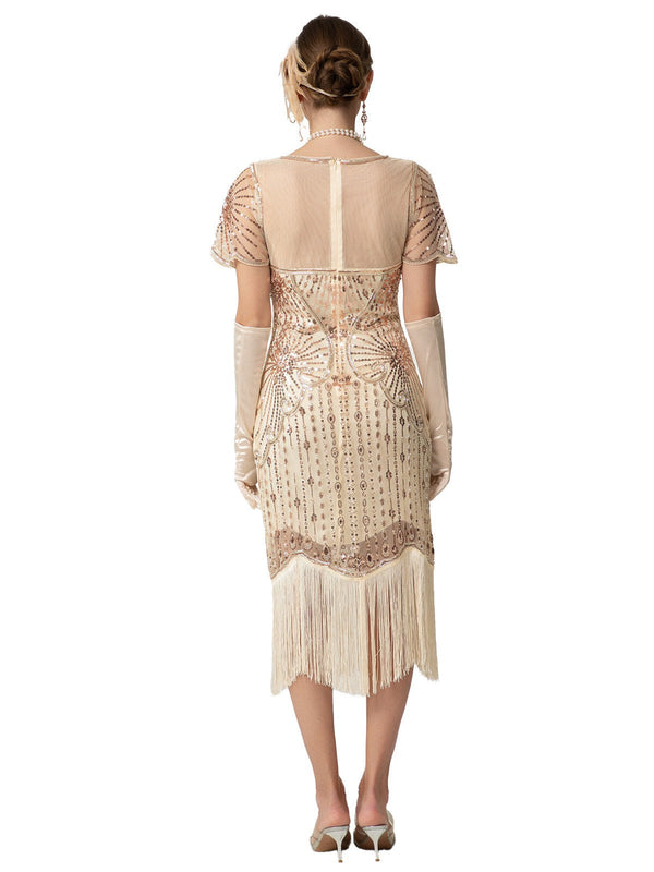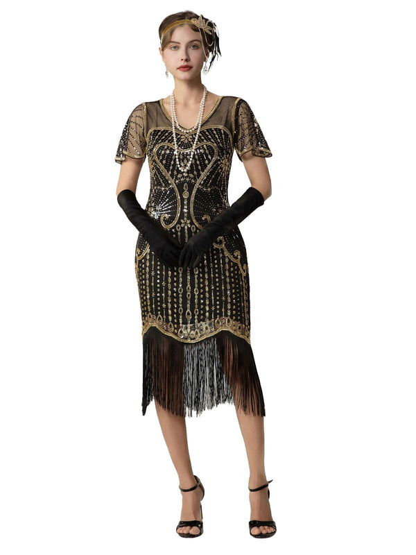 1920er Pailletten Perlen Fransen Charleston Kleid