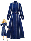 Dunkelblau 1940er Kontrastbesatz Gürtel Hemd Kleid