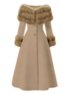 [Vorverkauf] Kamelfarbe 1950er Mehrschichtig Pelzkragen Mantel