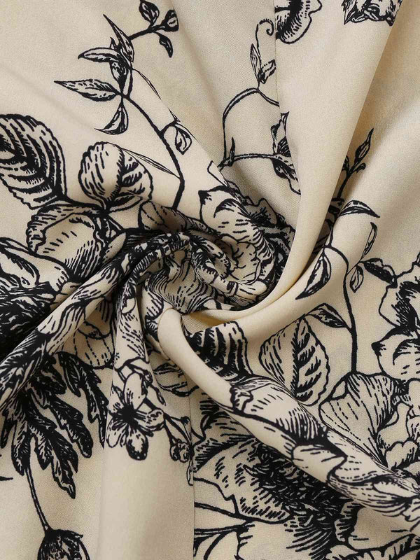 Khaki 1970er Gestricktes Quadratischer Hals Blumen Kleid