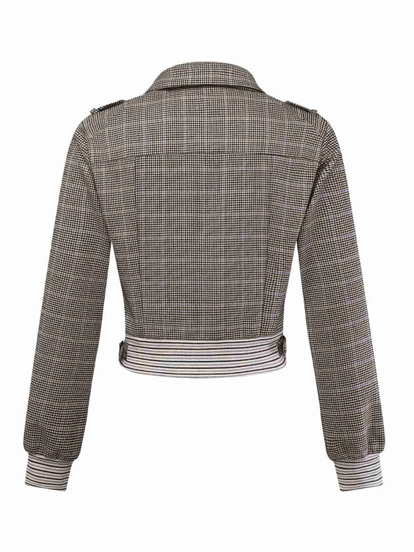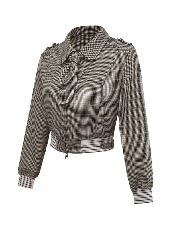 [Vorverkauf] Braun 1950er Hahnentritt Bogen Gerippt Stricken Kurz Jacke