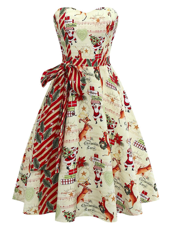 [Vorverkauf] 1950er Weihnachten Zuckerstange Santa Bogen Trägerlos Kleid