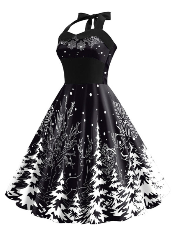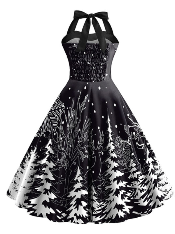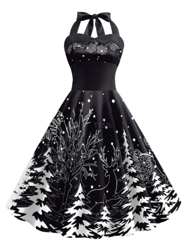 [Vorverkauf] Schwarz 1950er Weihnachten Halter Swing Kleid