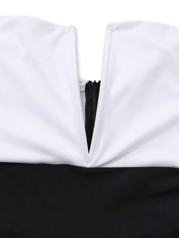 1970er Schulterfrei Tief V Kontrast Jumpsuit