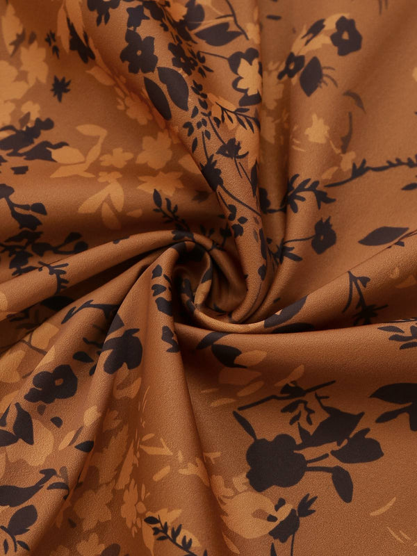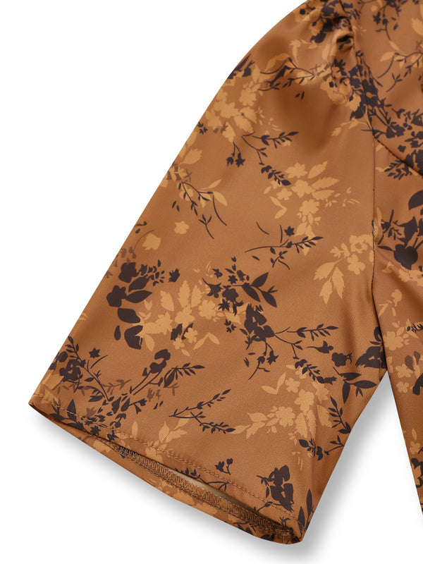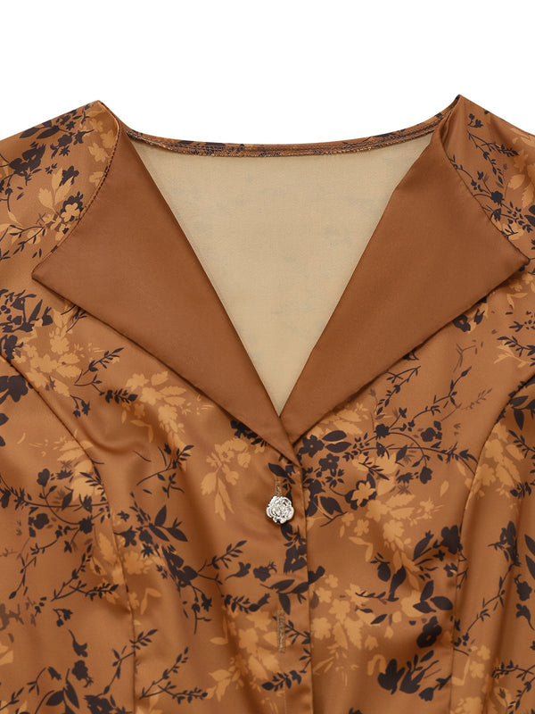 Braun 1930er Kleinblümchen Blumen Revers Maxi Kleid