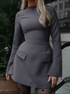 1960er Solide Langarm Faux Taschen Kleid