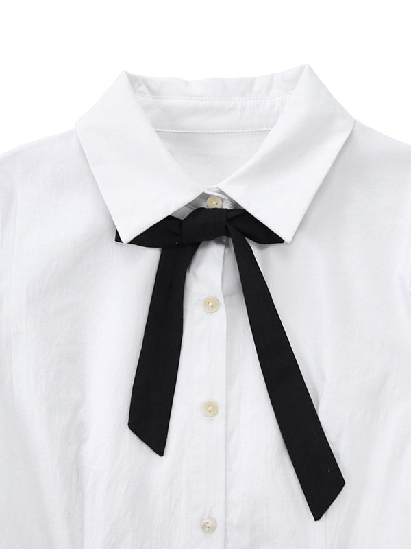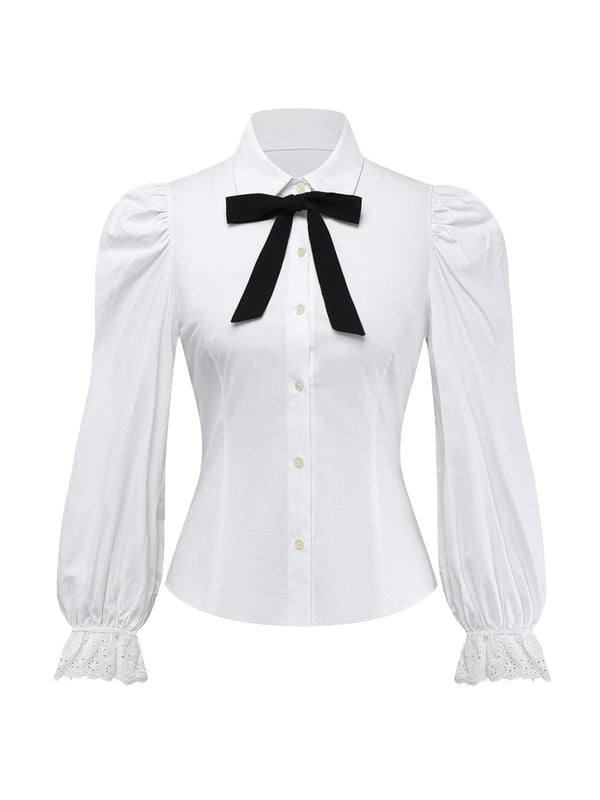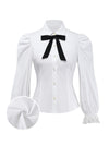 Weiß 1960er Puffärmel Bogen Tie Bluse