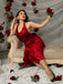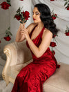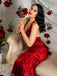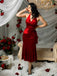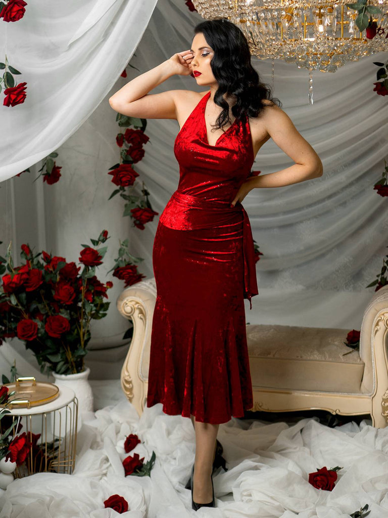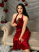 Tiefrot 1930er Funkeln Schaukelkragen Meerjungfrauen Kleid