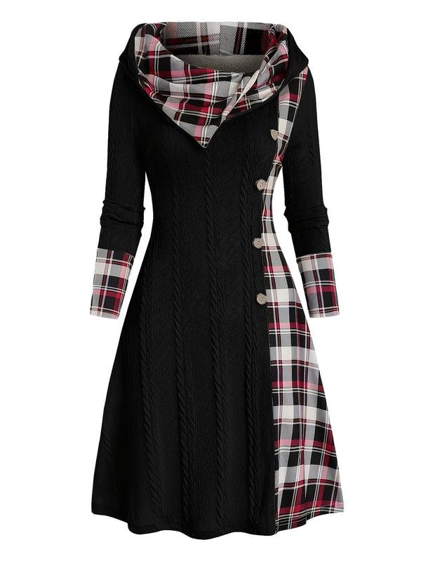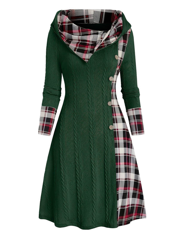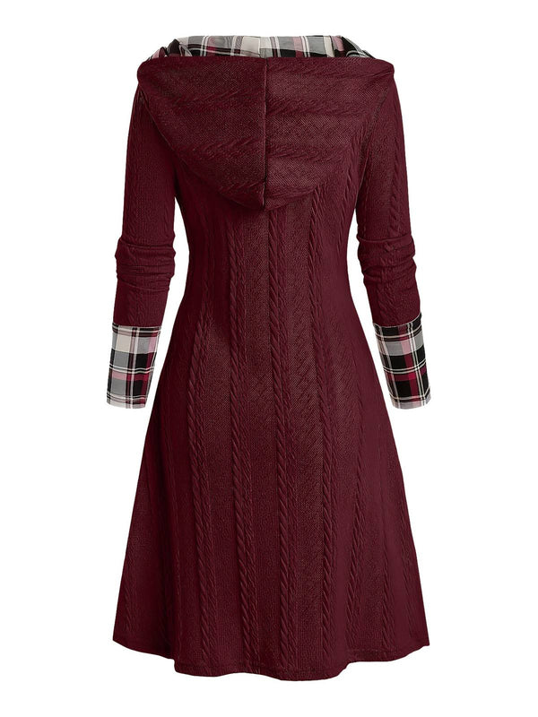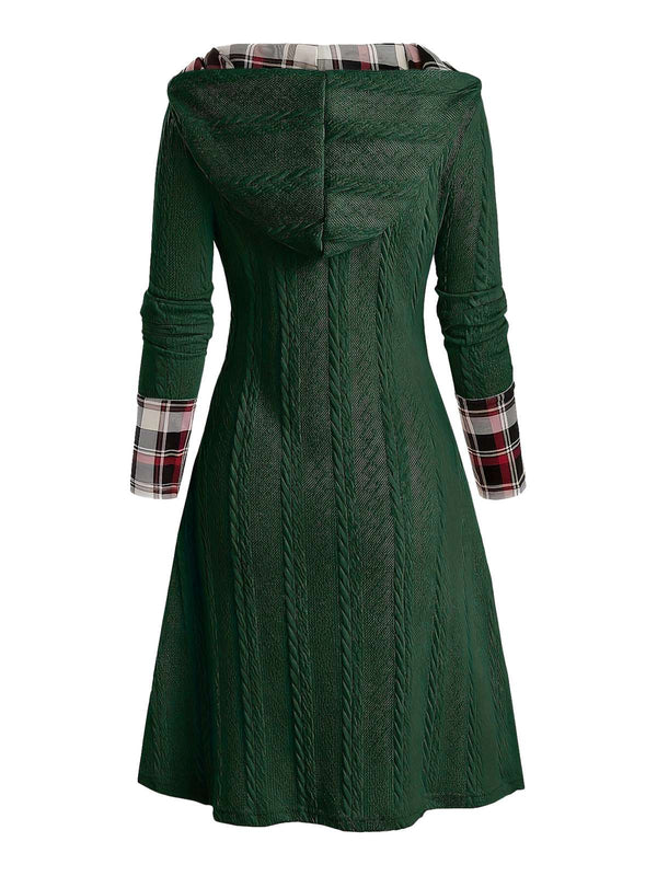 Weiß 1950er Plaid Stricken Kapuze Kleid