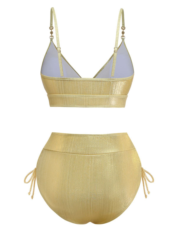 1970er Hochtailliert Metallic Schimmer Bikini Set