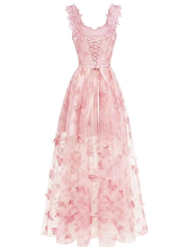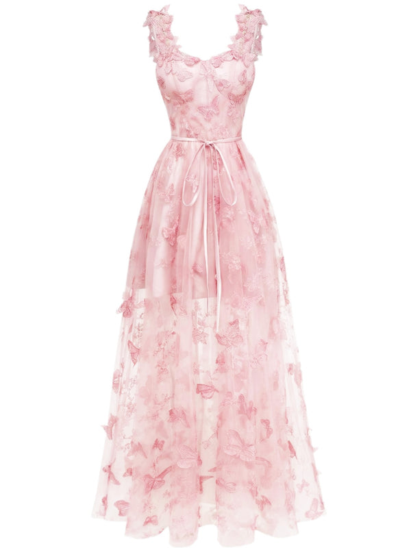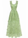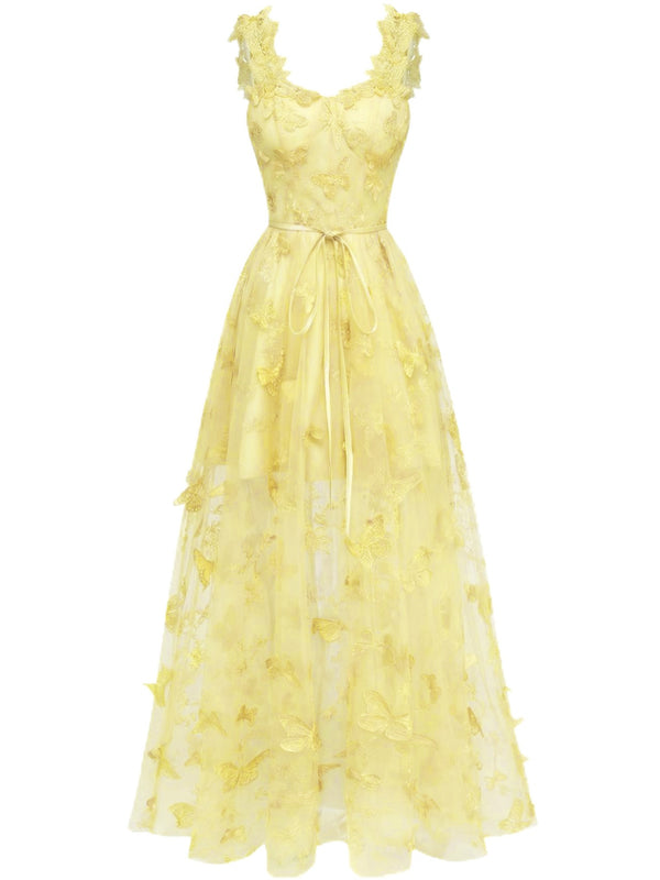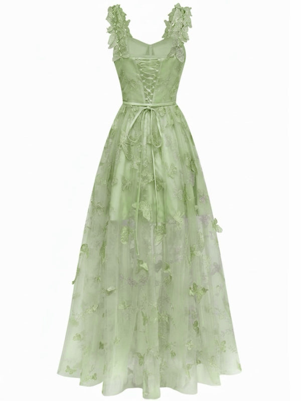 Grün 1930er Spaghetti Träger 3D Schmetterlinge Netz Maxi Kleid