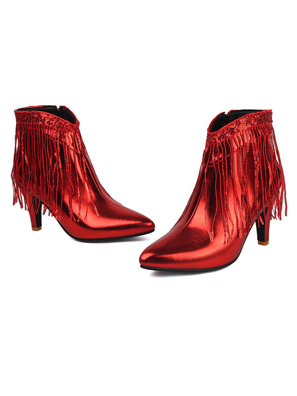 Metallisch Quaste Spitzer Spitze Stiletto Chelsea Stiefel