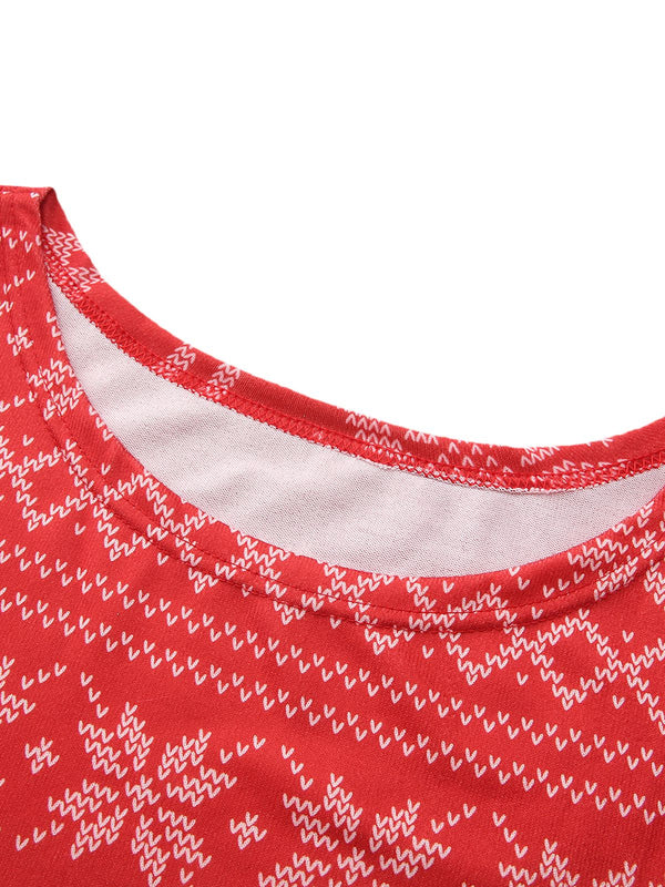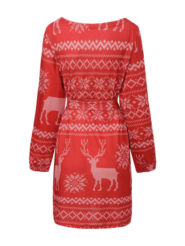 Rot 1960er Weihnachten Reindeer Schneeflocke Gürtel Kleid